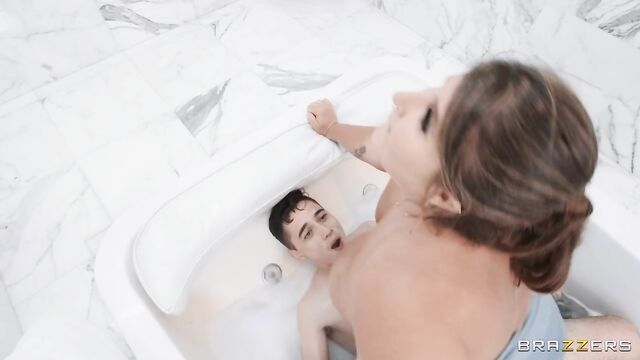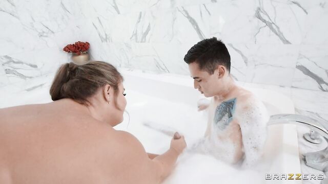 Description:Curvy cutie Leila Lewis is in the middle of doing yoga when her roommate asks if she wants to go to the mall with she and her boyfriend Juan Loco. Leila goes to take a bubble bath before they leave, but not before Leila and Juan perv out over each other a bit. Juan gets undressed and sneaks into the tub before Leila, giving her a big surprise. Leila gives Juan a handjob in the tub, before the pair advance to a full-on bathtub fuckfest. A good tittyfuck is what finishes Juan off in the end.