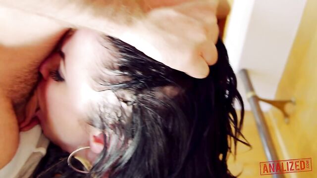 Description:The scene opens with the camera focused on a pair of hot pink stilettos. As it changes its focus, a hot pink panties covered in a fishnet style dress is shown. Then slowly, Veruca James is shown wearing hot pink lingerie covered with blue fishnet styled top. She stands in the bar counter. James Deen walks in wearing a gray T-shirt and denim jeans. He walks up to Veruca, turns her around with her back on her chest. He dry humps her and fingerfucks her pussy and asshole until she is turned on. Since her pussy is already soaking wet, she returns the favor that James has given him. She kneels down on the wooden floor and takes his big dick into her mouth. She sucks his dick until he is ready for some deep anal sex. With both of them ready for rough anal sex, James slips her panties and rams his big hard cock into her tight asshole and humps her from behind in the standing position. The porn stars change sex positions. Veruca lies with her back on the chair as James uses her panties as a mouth gag as he thrusts his hardon into her butthole. He fucks him hard with him standing on the edge of the chair. He rubs and pinches her clit as he thrusts his dick in and out of her asshole. James then lifts her up, without pulling his dick out, and shifts into another ass pounding position. She is now sitting on his lap and is riding his big hard cock in the cowgirl position. They once again switch position and is now fucking each other in the doggy-style position. James Deen finish butt fucking her in the reverse cowgirl position until he is at his peak. He then fucks her mouth until he orgasms. Veruca James willingly opens her mouth to receive his warm cum.