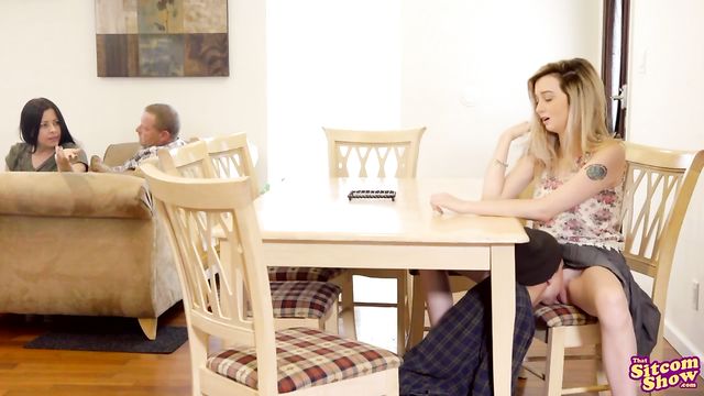 Description:Becky has a boyfriend and she loves to fuck him! She's hot and horny as she makes out with Juan on the couch. They try to keep it quiet since Roseanne and Dan are sleeping in the other room, but Becky won't be denied the opportunity to take Juan's dick and suck it to her heart's content. They barely avoid getting caught when Dan proves that he's not actually asleep, but Becky convinces Juan to keep letting her blow him because there's no way her dad will come out again.Climbing onto the couch, Becky flips up her miniskirt and pulls her thong down to entice Juan into fucking her. He lets her know he doesn't think it's a good idea, but Becky is insistent and Juan isn't about to say no to a sure thing. Soon Becky is getting her wish to take a doggy style pussy pounding. Eventually she turns onto her back so she can watch her boyfriend make her sexiest dreams come true. Even as they bang, Juan can never shake the feeling that they're going to get caught. When he accidentally fills Becky with a creampie, Juan asks Becky to marry him and she accepts. Moments later, Dan and Roseanne come into the living room to see what the ruckus is about, Becky tells them she's engaged and her parents reject the very idea by kicking Juan out of the house.Later, Becky sneaks Juan back inside. They take a seat at the kitchen table, but voracious Becky goes right back to trying to seduce Juan. He eventually lets himself be talked into eating out that slippery twat even as Becky talks with her parents. Taking Becky's seat at the table, Juan pulls her into his lap so she can ride his fuck stick as he jiggles her breasts. Bending her over the table, he keeps up his pussy pounding until Becky is well satisfied. Only then does Juan release his load all over Becky's ass, just in time to get caught and chased out of the house by Dan.
