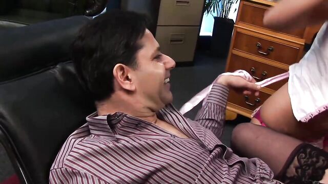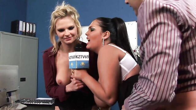 Gorgeous office hard fuck session with two silicone tits babes