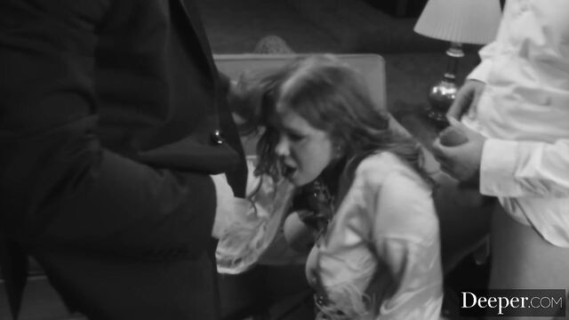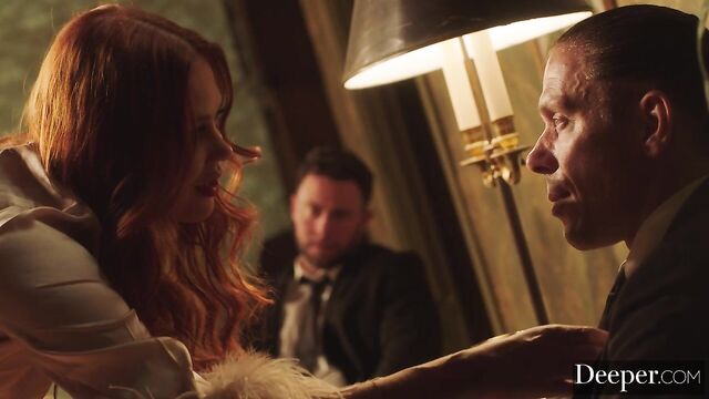 Description: Maitland connects again with the costar with whom she's played this evening's game. As she runs a straight-edged razor across his throat to make herself a smoother seat, Seth introduces his offering. He says, "I know bodies won't impress you, but you've always been a sucker for context," and with that delivers to Maitland what he knew she'd been holding out for: a DP with the two men she's only ever allowed to play coy with on screen. The pair return to the set of their sitcom, where Mick waits patiently. Maitland pulls him up by the throat and sizes him up as she snarls, "Make it count". Part 5 of 5