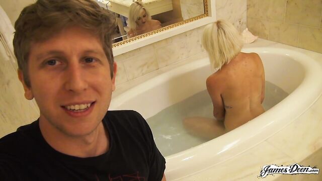 Description:This is a kind of behind the scene episode of James Deen and friends’ Las Vegas Sex Trip. James and Kate goes out to take care of some business and that leaves Danny with Marilyn. The ones left behind have nothing to do. Or is it? Marilyn has some idea in mind to keep them amused for the mean time. She wants a dick inside her immediately. She wants it so bad that all throughout this behind the scene video, she tries real hard to invite Danny’s dick have a little fun with her. But sadly, Danny said he don’t do scenes anymore. Marilyn got a challenge ahead of her. Her first major move against Danny is at the bathtub. Danny catches Marilyn having a little “session” in there. She’s using some waterproof vibrator to get herself off. The image of her playing with herself in the bathtub is kind of hard to forget. It’s amazing how they keep up their conversation while Marilyn is getting herself off. When she’s done, Marilyn invites him to watch her do some yoga. Although, we might think that yoga is boring, it’s nice to know that Marilyn does her yoga naked. Her bare tits and cunt gets showcased without being fucked. You don’t see this everyday on the business. The rest of time, Marilyn just lets herself go and play around. At one time, she just picks up a fan with colorful accessories and just flails it around while dancing naked. It’s the kind of performance that’s motivating to watch on your day offs. Scene cuts off to Marilyn holding the camera and saying that she’s gonna tempt Danny into fucking her. Marilyn really wants a dick in her. She tried convincing Danny into giving her some dick. She puts on quite a show to make Danny fuck her. She plays with herself to make Danny give up. But Danny is a fucking rock. He didn’t give in. James and Kate arrives without anything happening between Danny and Marilyn.
