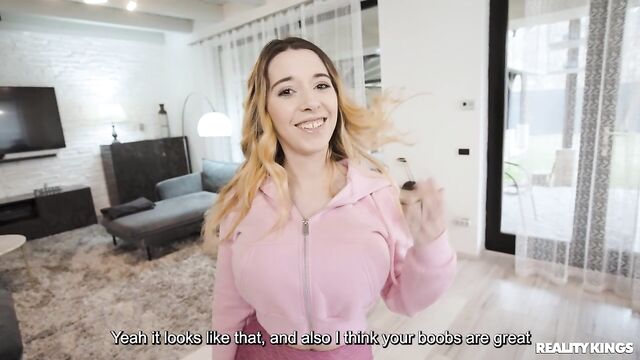 Description: When Jimmy Bud pulls up, he sees his neighbor Safira Yakkuza outside arguing with her boyfriend, again! After the angry guy drives off, Jimmy checks on Safira, who vents about how her man is always complaining about her looks. Jimmy can't find a single thing about this hottie to complain about, especially not her big fake tits, and she tells him to touch them. Not only that, Safira wraps those huge boobs around Jimmy's cock, then even lets him fuck her eager ass before shooting his load all over her massive jugs!