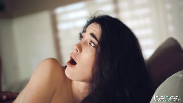 An innocent small-tit brunette Evelyn Claire enjoys rough sex