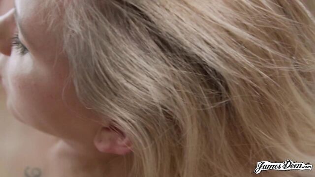 Description: Scene starts with Hollie sitting on a couch wearing a white tank top. James asks her questions about her return to the set. She came on James Deen's face once and is back, wishing for more since she enjoyed it last time. The blonde beauty with small tits likes clit stimulation and a bit of penetration. When asked about the last time she had orgasm, she answered it was 2 days prior to them taping the scene. That was also the last time she had sex, but had one a day before that. It turns out she's been having sex daily 5 days before her visit to James Deen. Instead of sharing silly stories, they decide to just get naked. James wants to make her cum on his face. Hollie likes the idea better and admitted she doesn't like talking that much. Hollie stands and walks away from the couch. Scene changes, focusing on her face. Fully naked and with her back against the couch, Hollie just can't stop moaning. She keeps looking at what's going on between her thighs. The camera shows James with his mouth busy on Hollie's pussy. He's eating her like she's never been eaten before. Hollie's body throbs from pleasure. With her legs wide open, James freely flips his tongue on her core. His hands reach for her nipples which he pinches much to Hollie's delight. James leaves her nipples and inserts his fingers into her hole. Hollie can only moan at how good James is. James fingers leaves her pussy and after giving it a few more licks, he leaves it wet. Scene ends with Hollie's very satisfied smile. She just came on James Deen's face.. again.