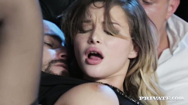 Description: Anna Polina stars in Private’s “Whistleblower” and this high class slut gets her hands and lips wrapped around two big hard cocks. Then, she takes a hard face fucking while her pussy is being pounded by the other stud, this perky tit babe loves a spitroast. After her ass has been split with some hardcore anal, things get even rougher! She opens up both holes and takes some wild DP action before finally dropping to her knees and taking their cum all over her face.