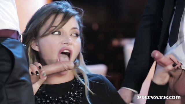 Description:Anna Polina stars in Private’s “Whistleblower” and this high class slut gets her hands and lips wrapped around two big hard cocks. Then, she takes a hard face fucking while her pussy is being pounded by the other stud, this perky tit babe loves a spitroast. After her ass has been split with some hardcore anal, things get even rougher! She opens up both holes and takes some wild DP action before finally dropping to her knees and taking their cum all over her face.