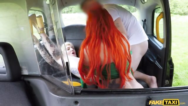 Redhead Alexxa Vice and blonde Pixie Peach fucked in the taxi