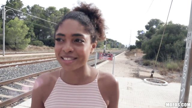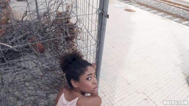 Glamorous ebony hottie Luna Corazon opens her nice pussy for a white dick