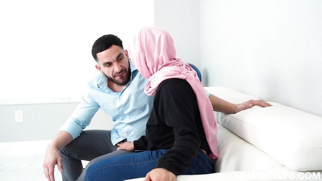 Description:Peter’s hijab-wearing stepmom Carmela enjoys cleaning the house while wearing nothing but her hijab, a bra and a thong and Peter can’t help but get distracted by it. When Carmela finally notices his huge boner she feels like it’s the perfect time to get a little adventurous and try her stepson’s American cock!