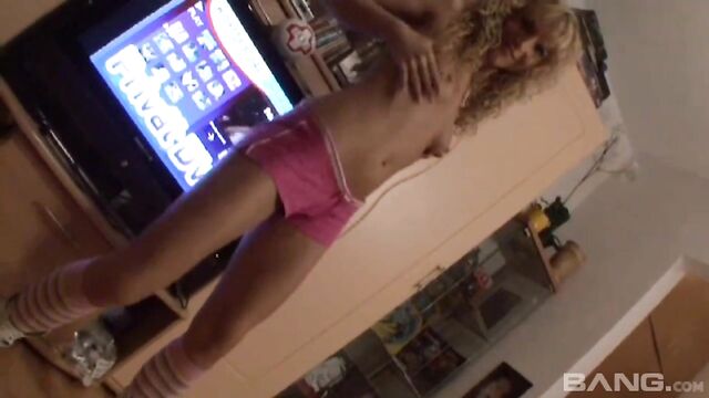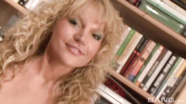 Awesome solo session with a masturbating curly-haired blonde