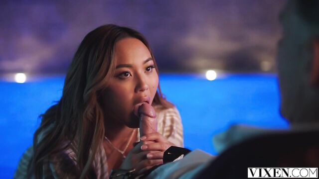 Astonishing dick-riding session with an oiled brunette Kazumi