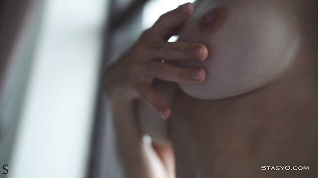 Gorgeous busty doll MarfaQ shows off her naked shaved pussy