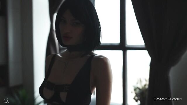 Description:Tattoos and strappy lingerie add even more spice to this sensational show. MarfaQ, a bombastic vixen, shows off her toned, curvy figure to Said Energizer’s superb camera. The talented duo turns the video release 519 into an erotic masterpiece. The dark-haired StasyQ model starts the seduction show with a tantalizing, slow dance. She pulls the straps of her bra until the pinkish nipples escape in their desperate need for subtle caressing. The tattooed goddess loses her panties soon enough while her juicy tongue licks her puffy lips. While a pair of firm breasts is on full display, touched by the subtle light, the stunner’s behind lurks in the shadow, waiting for the right moment to show all of its charms. MarfaQ continues to seduce in a luxurious study that inspires her to get fully naked and cuddle on a big, gray sofa. The temptress ends up wearing nothing but lipstick.