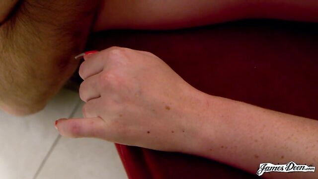 Description: Miley Mae heads over to James Deen’s simply house wearing a black flower-printed dress, a pair of red stockings and a pair of black flats. Her red lipstick complements her golden blonde hair. Her milky white skin is standing out. Her conversation with James is taking too long that her impatience is starting to show. Miley is now resting her naked body on a red couch. Her nipples are already hard. Her mouth and eyes reacting to the sensation that James is giving her as he begins eating her pussy. James locks both of her legs into his arms and lifts them up exposing her clit and pussy walls. He plunges into her pussy and thrusts his warm tongue inside her tight pussy. She almost curses at him in surprise. He then pulls his tongue out of her pussy and replaces it with his fingers. She gets turned on even more since she loves being fingered. James sees that she likes it so much that as he strokes her clit with his tongue as he swirls his fingers around inside her wet and tight pussy. She is almost reaching her peak. She knows she is about to orgasm. James, knowing the same thing, decides to get his fingers off of her. He lets her rest awhile to get back to her senses. She is already red. A few moments later, James gets back into action. He once again wraps his arms around her legs, lifts them up and lunges his whole face into her pussy. Miley Mae is about to orgasm soon and James Deen feels it. Her heart beats too fast, her eyes shut, and her pussy is becoming tighter than ever before. It is tightly wrapped around his tongue with her clit throbbing. As he thrusts his tongue in and out of tight pussy once more, she releases her warm juices all over his face.