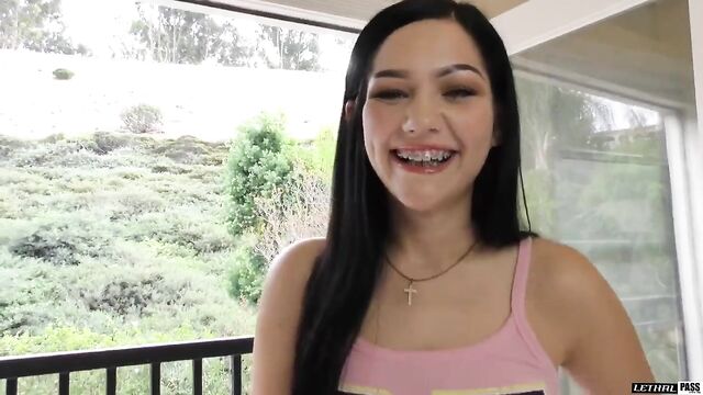 Description: She was a cutie for sure. He met her at a college party a few weeks ago. When she found out that he was a personal trainer, she was very excited. He decided to invite her to his gym and show her a thing or two. She ended up showing him a few things. She walked into the gym wearing the sexiest short shorts that hugged her perfect round teen ass in all the right places. She gave him a coy smile and started to do a few squats right in front of him. Her ass jiggled in all the right places as she went up and down slowly and sensually. It wasn't long before she placed her hands on his pulsing cock.