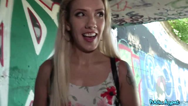 Description: I saw Sophia Grace wearing a little white dress and she looked lost, so I walked up to her and started chatting. Sophia was a blonde woman from LA who told me she had hopped a plane on a whim and come to Prague, but with no contacts, no friends, and nowhere to stay, she had quickly run out of funds. I told her we could help each other, since I was casting for an advertising company. For a few euro, Sophia walked off with me into a tunnel and stripped her dress off so I could see her pert tits and her great ass. For a bit more, Sophia gave me a blowjob, and sucking my cock made her horny, so she let me fuck her wet pussy until I could cum on her face.