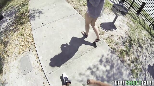 Description:I was hanging at the park, and spotted sexy Scarlette in her tiny shorts sitting on a bench. I introduced myself and asked if she would let me take some pictures of her for my portfolio. I knew she probably didnt make much money at her job so I offered her $300 an hour, but ONLY if I could see her naked first. She said she is a good girl but it didnt take much to make her go bad! After fucking her for a bit in a graffiti covered alley, we took it back to my place. Watching Scarlettes perfect butt bouncing on my hard cock was and I could still feel my dick hitting her walls. I busted the fattest nut ever all over her ass and she wasnt even mad about losing her job.
