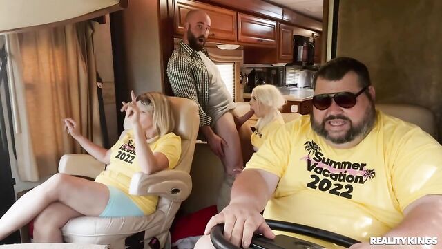 Description:Cute blonde Gia OhMy is so bored on her family's RV vacation, she just has to liven it up by shaking her tits and ass as her BFF gets it all on camera. When she catches hitchhiker Danny Steele watching her change her shirt at a rest stop, she sneaks him on board and sucks his cock, then rides him as quietly as she can! It's LA or bust for Danny, but will he get caught before he busts?