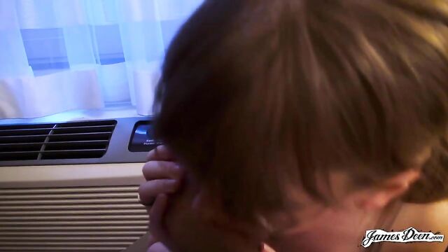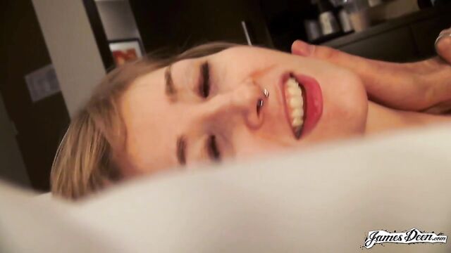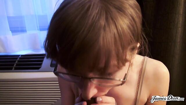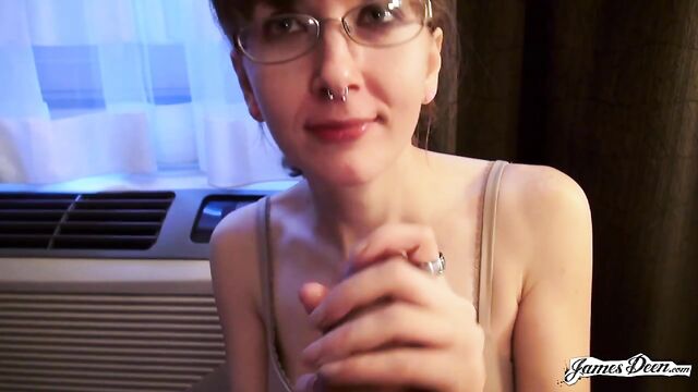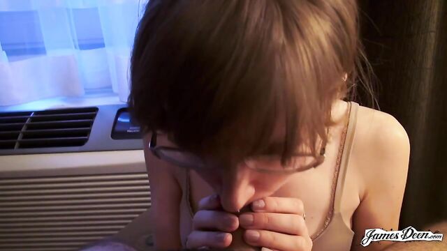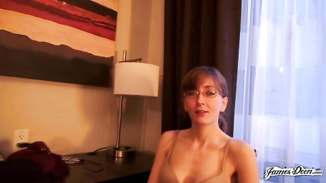 Description: Rose Chief, dressed in a black top covered with a dark blazer and a violet scarf wrapped around her neck seems to be waiting for someone in the streets of New York. She completes her outfit with a new pair of eyeglasses, a nose ring, and a pair of lavender earrings. James Deen arrives donning a black polo under dark thick coat. With their almost matching outfits, it seems that they talked about what to wear the night before. It must be winter in New York. But didn’t stop them from walking around the busy streets of the city. They even went to a café to grab some snacks. James opts for a hot drink but Rose chooses something cold. After finishing their snacks, they decide to head to a more private places so she can start with her application. The two seemed to have checked in a hotel. With the dark curtain covers opened, welcoming the light inside the room, Rose sits in a black chair still wearing her black spaghetti-strapped blouse and tattered jeans. She then takes her top off, exposing her small tits securely held by a beige bra as she heads to the edge of the bed where James sits with his big dick ready for action. Wanting to prove herself, she deepthroats him right then and there. Rose takes his black t-shirt off as James unbuckles her belt before dragging it down her legs. He slowly thrusts his dick inside her shaved pussy. The position isn’t satisfying enough. She hops on the black chair that she was originally sitting in, her butt cheeks facing his chest. He rams his dick into his wet and tight pussy hitting her G-spot. After humping her a few times, he turns her around without pulling his dick out and fucks her in a missionary position with her back on the chair. The rough sex continues as James, with his dick still inside her tight pussy, transfers her from the chair to the edge of the bed covered in purely white sheets. He continuously humps her until his dick throbs crazily, ready to cum anytime. He then moves her into doggy-style position and fucks her hard, their skin slapping making them hornier. Knowing that he is about to come, with warm juices already dripping from the tip of his penis, Rose Chief bends on her knees and sucks him hard until he releases his cum all over her.