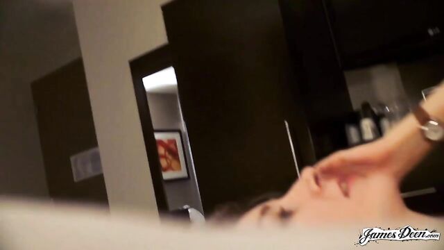 Description:Rose Chief, dressed in a black top covered with a dark blazer and a violet scarf wrapped around her neck seems to be waiting for someone in the streets of New York. She completes her outfit with a new pair of eyeglasses, a nose ring, and a pair of lavender earrings. James Deen arrives donning a black polo under dark thick coat. With their almost matching outfits, it seems that they talked about what to wear the night before. It must be winter in New York. But didn’t stop them from walking around the busy streets of the city. They even went to a café to grab some snacks. James opts for a hot drink but Rose chooses something cold. After finishing their snacks, they decide to head to a more private places so she can start with her application. The two seemed to have checked in a hotel. With the dark curtain covers opened, welcoming the light inside the room, Rose sits in a black chair still wearing her black spaghetti-strapped blouse and tattered jeans. She then takes her top off, exposing her small tits securely held by a beige bra as she heads to the edge of the bed where James sits with his big dick ready for action. Wanting to prove herself, she deepthroats him right then and there. Rose takes his black t-shirt off as James unbuckles her belt before dragging it down her legs. He slowly thrusts his dick inside her shaved pussy. The position isn’t satisfying enough. She hops on the black chair that she was originally sitting in, her butt cheeks facing his chest. He rams his dick into his wet and tight pussy hitting her G-spot. After humping her a few times, he turns her around without pulling his dick out and fucks her in a missionary position with her back on the chair. The rough sex continues as James, with his dick still inside her tight pussy, transfers her from the chair to the edge of the bed covered in purely white sheets. He continuously humps her until his dick throbs crazily, ready to cum anytime. He then moves her into doggy-style position and fucks her hard, their skin slapping making them hornier. Knowing that he is about to come, with warm juices already dripping from the tip of his penis, Rose Chief bends on her knees and sucks him hard until he releases his cum all over her.
