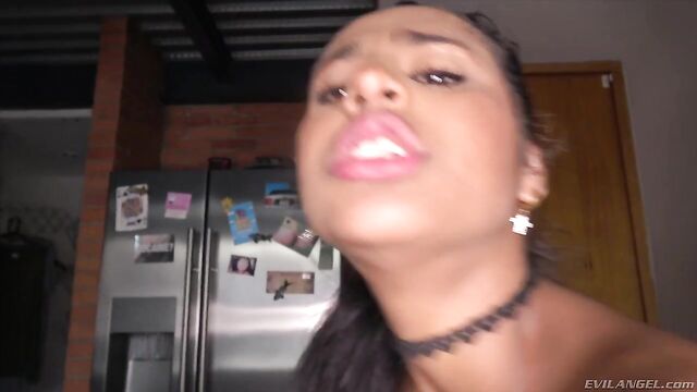 Description: In a leotard and a sexy choker, dark-skinned Colombian beauty Indira offers her perfect, all-natural body to perverted stud Nacho Vidal. The director licks her from behind. When he buries his giant cock in Indira's juicy pussy, she eagerly humps back against his invading prick. The lewd teen kneels to suck the enormous tool before riding him some more. Nacho pushes his thick boner up her tight asshole, stretching her widely. A session of fierce anal reaming climaxes with a cum load on Indira's hairless mound.