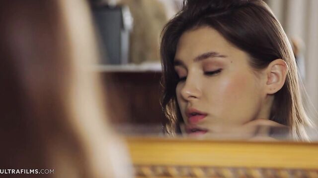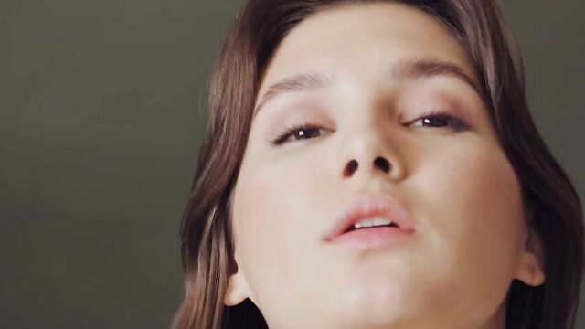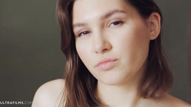 Gorgeous short-haired brunette Ellie Luna shows her naked body