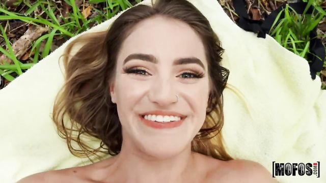 Good outdoor sex in public place with a smiling Kenzie Madison