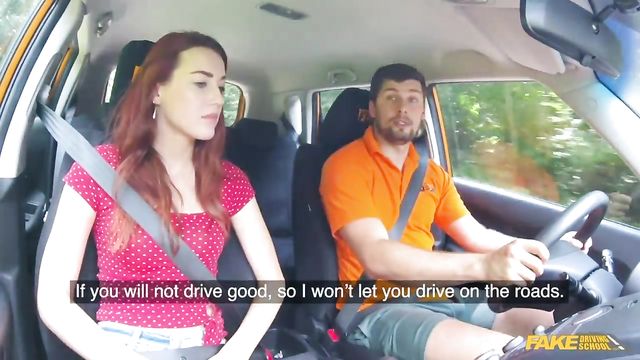 Description:I had the lovely Charlie Red as a student today in the Mean Orange Machine. Charlie started the lesson well enough by identifying the pedals, tying her seat belt, and disengaging the handbrake, but once she got the car rolling, the trouble began to set in. Charlie was a bit behind on her ability to shift gears, and stalled the car a few times. I suggested we change places so I could take her out on the road. While we drove, Charlie asked how long it would take to get her license. I told her it would take more lessons, which she did not like, so she asked how she could speed up the process. Charlie knew how to entice me, and flashed me her tits. I tried to remain professional, but when she showed me her ass wearing matching red lingerie, I wanted to fuck her. We pulled over and she gave me a blowjob, then fucked me hard until I could pull out and cum on her pussy!