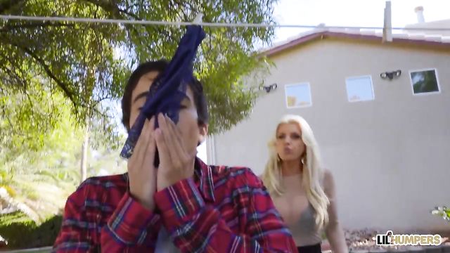 Description:Brittany Andrews and her friend catch up over coffee. Brittany complains about her lack of a love life, but her friend seems more concerned about a local panty thief, Ricky Spanish, who just so happens to sneak into her backyard as the women speak! When the ladies rush outside to catch the creep, he disappears! Within minutes, Brittany finally gets her hands on the scamp. When she makes him empty his pockets, she is delighted to discover that big bulge in his pants is actually a hard cock – and she intends to put it to good use!