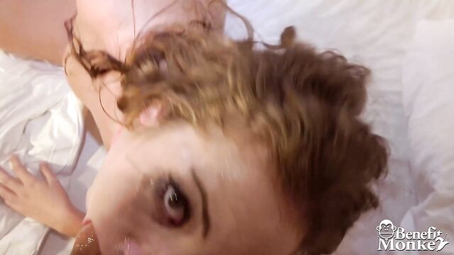 Curly-haired girlfriend Venom Evil gets her face fucked nicely