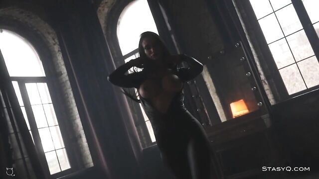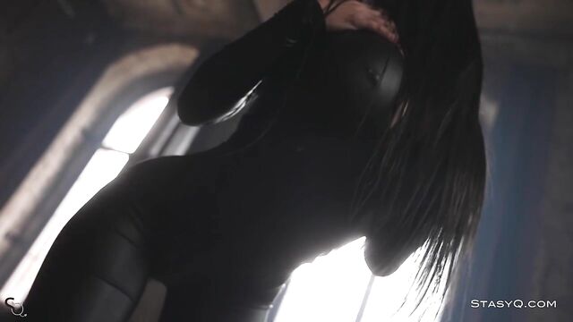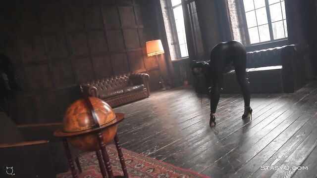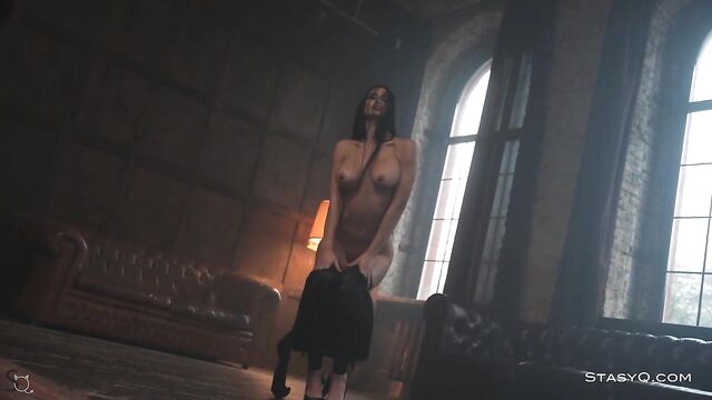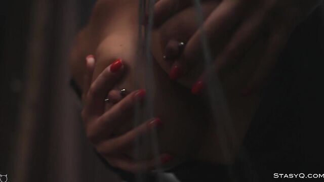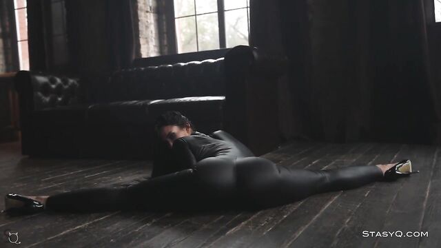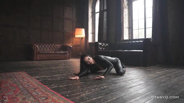 Description: Nobody could ever beat KarenQ at the game of seduction. Said Energizer is there to enhance the show to a whole new level, and Video Release 548 brilliantly depicts the captivating elegance of this StasyQ model. The lovely vixen first appears in a black, tight bodysuit that accentuates her incredible proportions, but she will soon strip naked and show off her smooth skin. Stunner's long dark hair reaches the top of her gorgeous buttocks, and her black pumps add to the allure. KarenQ is not only attractive, but she is also flexible. This stunning seductress performs splits on the floor while holding her naughty hands on her firm booty. The dark-haired beauty, now fully naked, traces her tanned skin with her well-manicured fingertips and touches her pierced nipples. KarenQ continues to entice as her gorgeous toes curl, taking in the luxurious aura of a high-end living area.