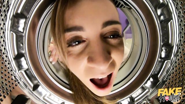 Description:Staying in the Fake Hostel, Josephine Jackson does her daily workout in her room as Jason X stares in horny awe. Sweaty and excited, Josephine berates him for staring at her, then changes into tights and see-through shirt to go do laundry. When Josephine opens the washing machine door, she notices a piece of clothing has been left behind. Reaching in, the busty brunette's hair gets caught in the machine! Josephine calls for help, and soon hears Jason X behind her jerking off. She asks him not to cum, but he can't help it. Josephine asks Jason to take down her tights and fuck her, and he gets another erection, then plows her pretty pussy, then helps her free her hair from the machine. Turned on, Josephine tries to leave the room, but slips on Jason's load, and once again gets stuck in the washing machine. Jason sticks his cock in her mouth for a blowjob, then helps her out again, then the couple hair back to their shared room where Josephine takes Jason's cock until he covers her in a facial!
