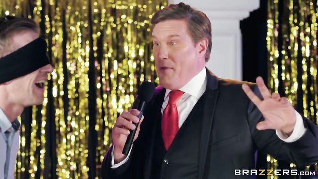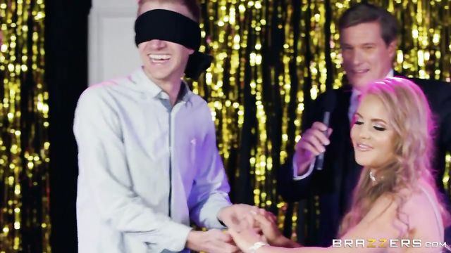 Blindfolded man wins a nice pussy of a hot Alessandra Jane