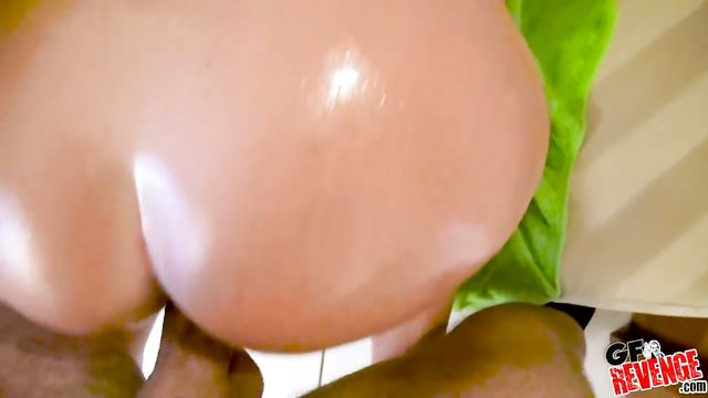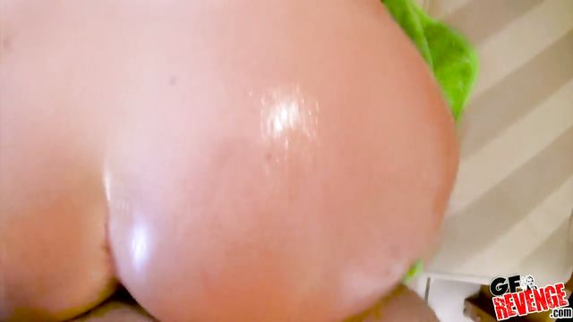 Oiled hottie with round bottom Charli Ann screwed in the doggy style pose