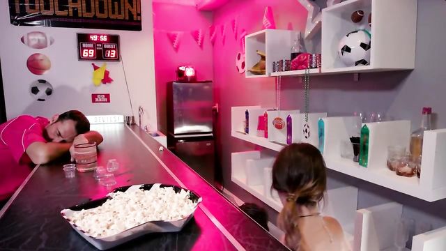 Seduced babe Kitty Carrera is sucking a fat dick under the bar stand