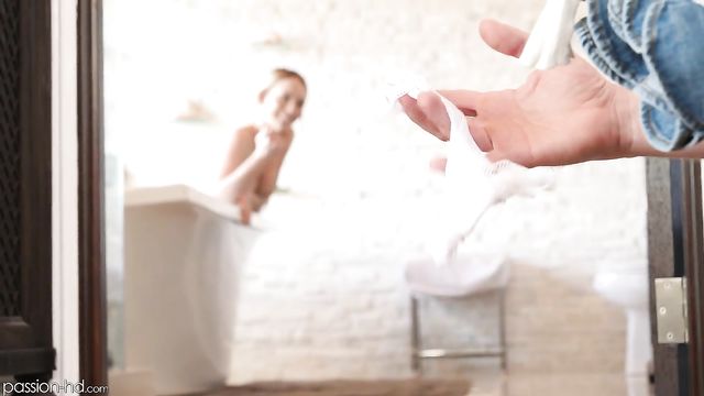 Beautiful soapy hottie Lily Larimar gives a blowjob in the bathtub