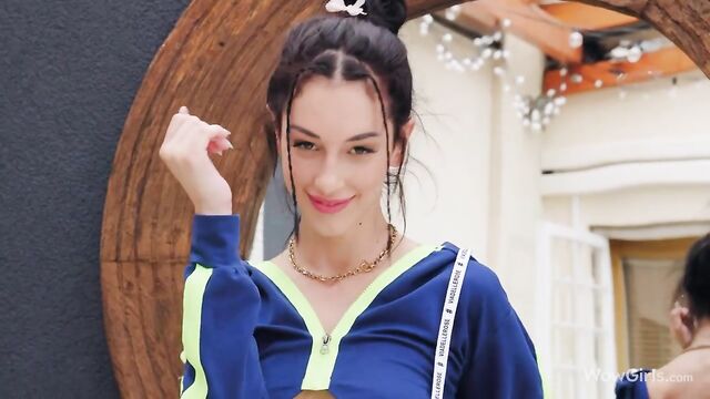 Soloing angel Shania Vegax is touching her wet shaved pussy