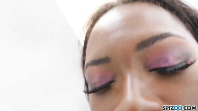 Good-looking ebony hottie Noemie Bilas sucks a tasty white dick