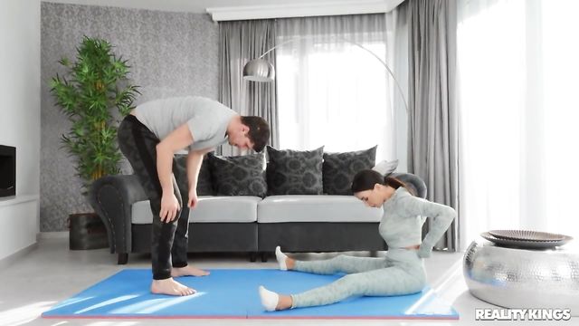 Description: Alyssia Kent. Yoga pants clinging against her delicious pussy lips. Long-sleeved top pulled taut over her round natural tits. Revealing and tantalizing positions that stretch out her tight, fit body. All in front of Kristof… Why not have him lend a hand? That way he can get up close and personal with Alyssia and she bends, poses, flexes herself. Each with a little gasp or moan of enjoyment. Then, when she's all limbered up, maybe he can lend her something more?