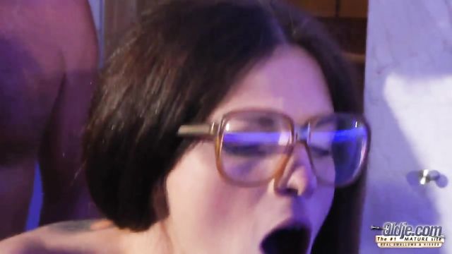 Cute nerdy brunette Denisa Doll gets her crack fucked from behind