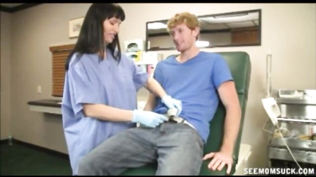 Description: Alex takes Joey to visit his mom, a nurse at the local clinic. Mrs. Niore is shocked to see the size of Joeys dick and starts to rub it. Joey gets hard from excitement. Moments later Mrs Niore is sucking on it hard.