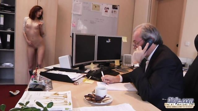 Description:The old boss and the young hot secretary.Does it sound familiar? Oh yes..this is a nice beginning for a hot old and young story! But..the more she tries to get his attention, the more he ignores her. Not even observing her when she caresses those little titties and swirls behind his fancy desk. Frenchmen are really silly some times. She just gets in his lap, half naked and teases his dick through his pants! They lick and suck each other in 69 right on his desk! Which man doesnt fantasize on this? Especially when you are 66 years old. He puts his love pen to the work and puts a nice signature in her throat!Enjoy!