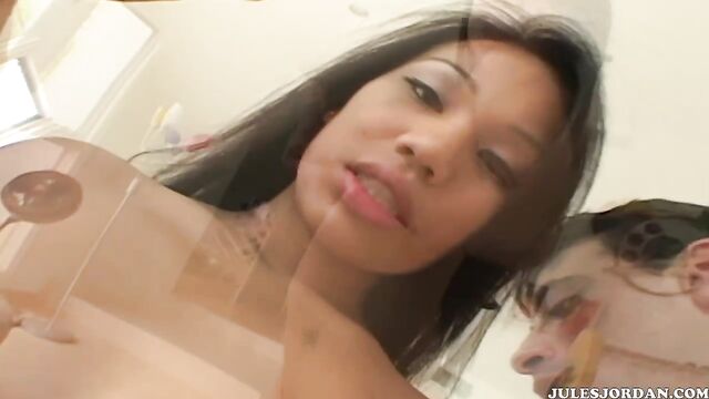 Asian busty teen Luci Thai swallows multiple shots of sperm