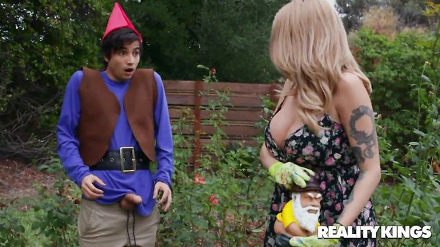 Description:Joslyn James is crazy about lawn gnomes, with a big collection on her lawn and in her home. On this day, she comes out to tend to her lawn, when she notices that she suddenly has a new gnome (Ricky Spanish). As Joslyn does her outdoor chores, Ricky begins humping his fellow gnomes, until she catches him in the act. Joslyn realizes that she's been tricked... but finds it hard to stay mad at the little guy and decides to use him to fulfill her fantasy of having a gnome lover.