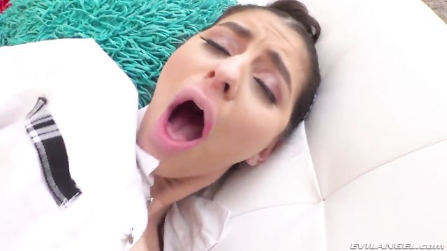Description:In her leather skirt, sexy knee socks and pigtails, cute brunette schoolgirl Nina North can't wait to try out her brand new, extra-large dildo. The all-natural minx sucks her toy and then pushes it inside her tight, young slit, making herself cum. When she opens her eyes, naked stud Mick Blue is sitting beside her! The comely student hungrily sucks his throbbing meat, and Mick delivers a relentless pussy pounding that leaves Nina's sweet twat dripping a thick, creamy mess.
