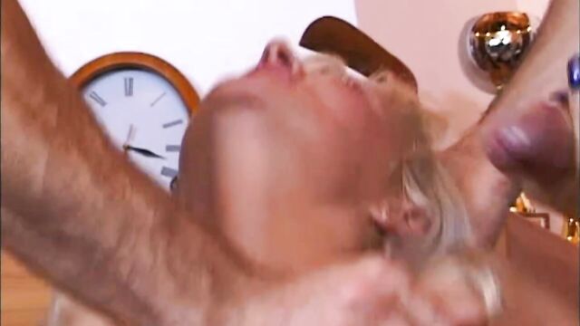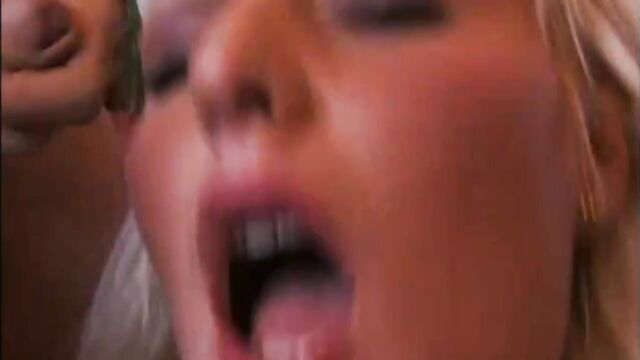Description: Holly begins the scene by masturbating and playing with her balloon sized tits until she is joined by three men who start to feel her up. The men take out their big dicks and she takes turns sucking and tugging on them while they grip her hair and face fuck the blonde bitch. Next, she bends over and continues to suck on a fat cock while one man trashes her pussy from behind. She hops on top and grinds her pussy up and down a stiff dick while the other two men wait their turn for a sloppy sucking. This gangbang slut is then spread on her side and is pumped, stuffed and fucked by a fat cock! This fourway turns hardcore when Holly is DP'd hard. The men pound her pussy and ass while she chokes on cock and she only stops sucking to scream out of pleasure! After being DP'd in several positions, and with one cock still in her ass, Holly opens wide and takes a double cumshot to the mouth before going ATM and taking the final dose of man milk.