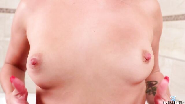 Description:Whenever bath time rolls around for Bella Model, the Russian coed doesn't hesitate to spray the warm water at her bald pussy as a warmup for some toy masturbation fun. Wet and Wild is the name of the game as the brunette moans her way to a body quivering big O.