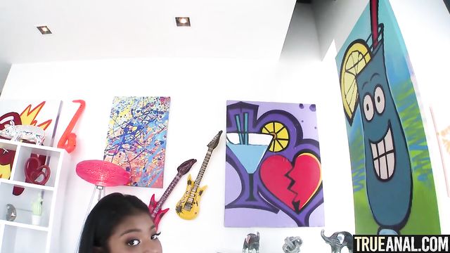 Cute ebony hottie Nia Nacci opens her ass for a white fucker