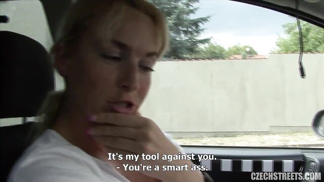 Description: Is there such a thing as an honest cab driver? I decided to check it out for myself. I stumbled upon a cab with a female driver. An intriguing blonde about 35 years old. It turned out that the situation is lamentable. The shameless chick tried to charge me 400 crowns more than she was supposed to! I threatened that I’d show my recording to her boss, but I offered her that she can buy out of it. With sex! I’ll erase the recording if she has sex with me, and we are squares! The sexy driver gave a nod to it. I punished her with my cock. Under a bridge. It was so bad-ass! Pulling clams does not pay off, babe! Check out this video! It’s awesome!